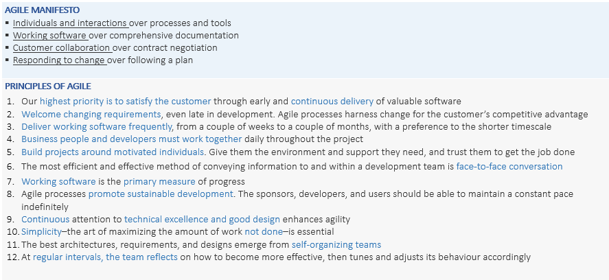 For ease of reference, we have provided below the manifesto and 12 principles of agile development as referenced in agilealiance.org.